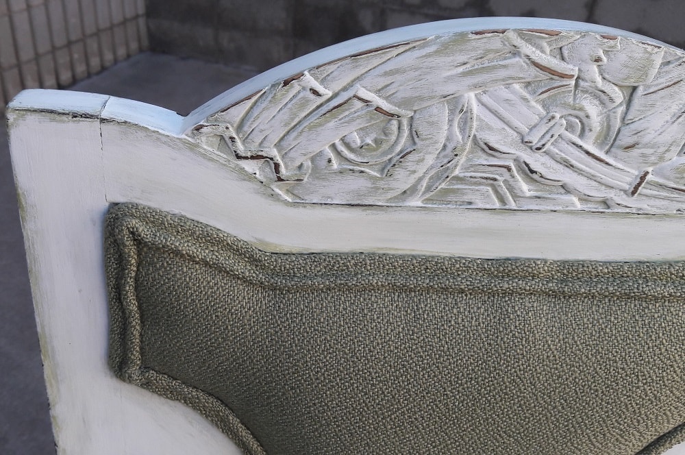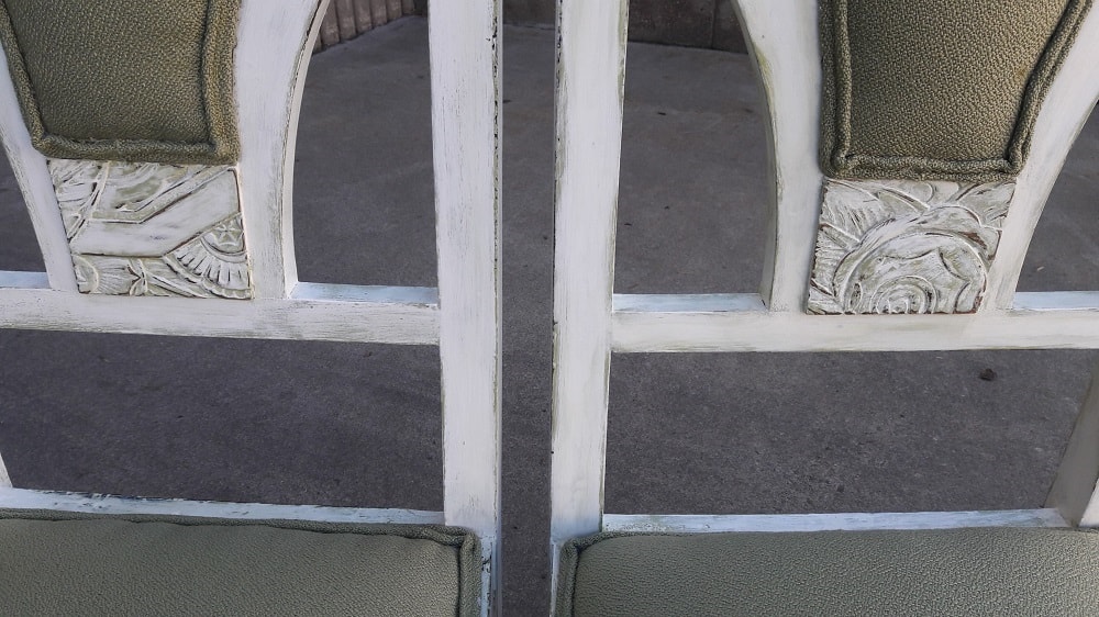 després de destapissar, netejar i fer el tractament anticarcoma, les vam pintar amb pintura chalkpaint, primer amb una capa de color verd i després una altra de color blanc. Rasquem amb esponges abrasives per aconseguir el decapat desitjat. Encerem amb cera incolora i llustrem amb un drap de cotó per obtenir el brill característic d’aquestes ceres que tant m’agrada. En un altre post us ensenyaré aquest procés amb detall.