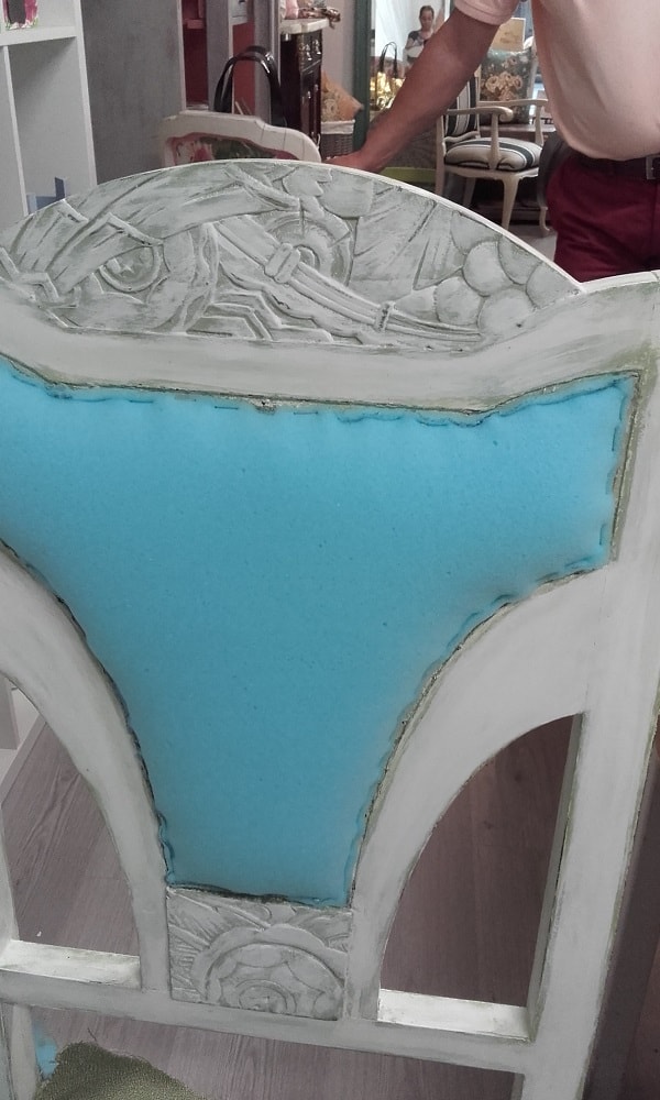 El procés en l’entapissat del respatller és diferent, comencem amb una capa de roba perquè és foradat i es vegi ben acabat pel darrera,